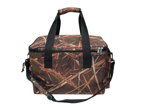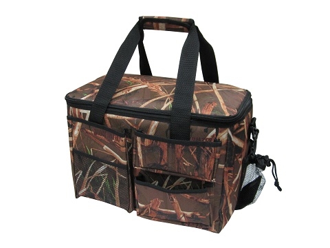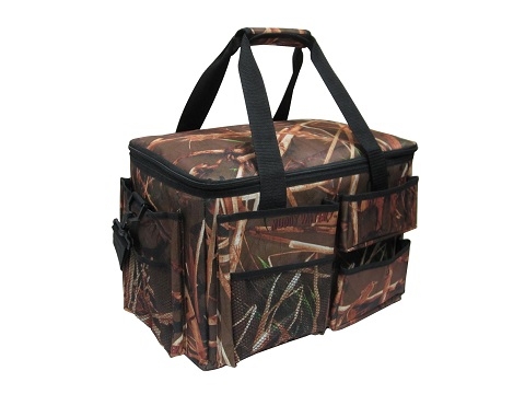 - Webbing handle wrapped camo 600D polyester with velcro closure
